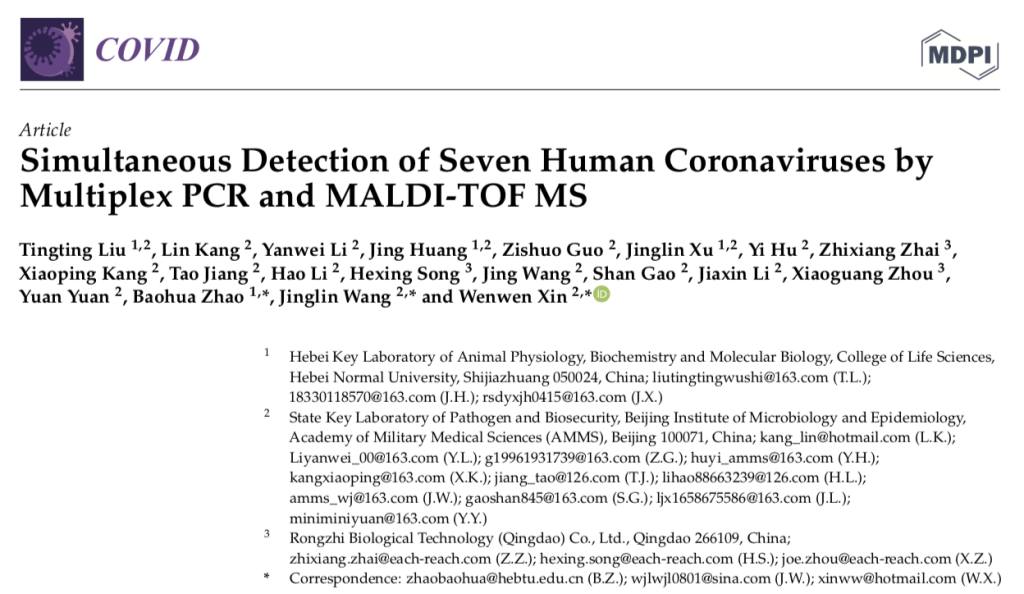 研究人员开发了一种将多重PCR与基质辅助激光解吸/电离飞行时间质谱相结合的方法时检测和区分7种人类冠状病毒。HCoV-MS方法具有较高的特异性和灵敏度,检测限为1-5拷贝/反应。该研究对163份临床样本进行了检测,结果与实时PCR结果一致,结果表明HCoV-MS和实时PCR的检测灵敏度相当;HCoV-MS法是一种灵敏的分析方法,只需1μL样品;HCoV-MS是一种高通量方法,可以在30分钟内快速处理384个样。