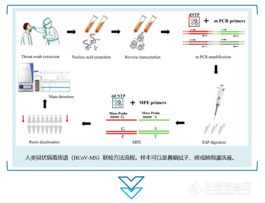 人类冠状病毒(HCoV)与一系列呼吸道症状有关。严重急性呼吸综合征(SARS)-CoV、中东呼吸综合征和SARS-CoV-2的出现对人类健康构成重大威胁。本研究开发了一种将多重PCR与基质辅助激光解吸/电离飞行时间质谱(MALDI-TOF MS)相结合的方法(HCoV-MS),以同时检测和区分7种人类冠状病毒(HCoV)。HCoV-MS方法具有较高的特异性和灵敏度,检测限为1-5拷贝/反应。为了验证该方法,在研究中对163份临床样本进行了检测,结果与实时PCR结果一致。研究结果表明:HCoV-MS和实时PCR的检测灵敏度相当;HCoV-MS法是一种灵敏的分析方法,只需1μL样品;HCoV-MS是一种高通量方法,可以在30分钟内快速处理384个样品。在本研究的最后,作者建议使用这种方法来补充大规模筛选研究中的实时PCR。