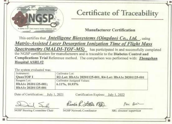 全球首个获得国际权威机构NGSP认证的飞行时间质谱方法