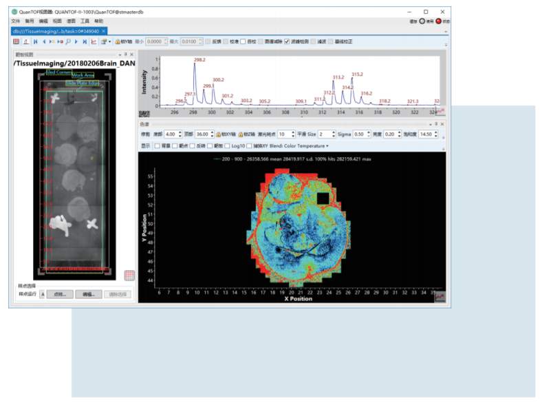 QuanIMAGE,可以对质谱得到的实验数据进行分类、优化和处理,来进行成像。强大的数据分析和图像处理软件平台,可以对成像图任意区域进行分析和比对。