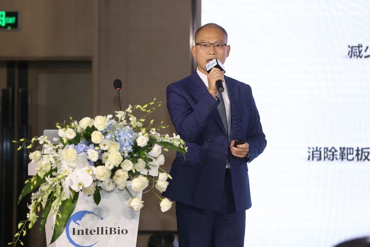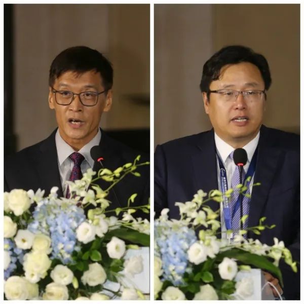 融智生物董事长、首席技术官周晓光(上),硕世生物副董事长、总经理王国强(下)分别为发布会致辞