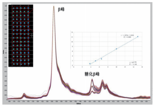 三种不同糖化率样本,每种样本24次点样测试,共72次测试的质谱图叠加,测试精度达98%以上。