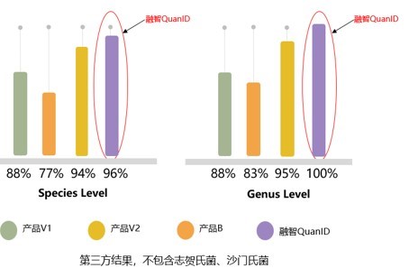 在微生物鉴定方面,第三方的验证结果表明,QuanID微生物质谱在种水平和属水平鉴定准确率上均优于国际同类产品。